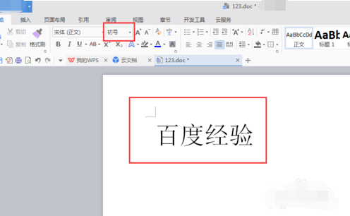 2、然后,我们先把百度经验四个字换成最大号初号,请看初号的字体的比例大小,如下图