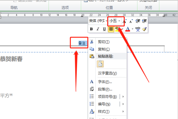 2、鼠标左键双击该页眉,就会进入编辑状态,选中要改变的字体,点击鼠标右键,在弹出框上方就会看到字体大小的设置;