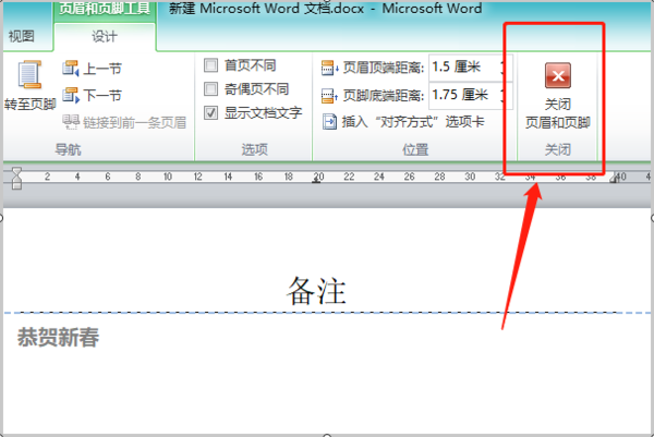 4、设置完字体大小后,点击页面上方的“关闭页眉和页脚”;