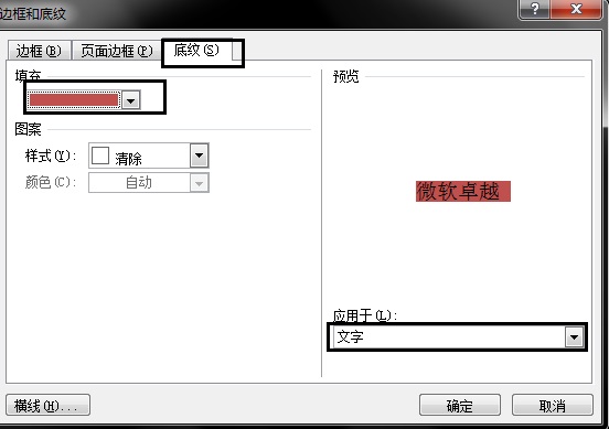然后在右下角选择应用于文字,一定要选择文字才行,不选择文字就没有文字底纹的效果了