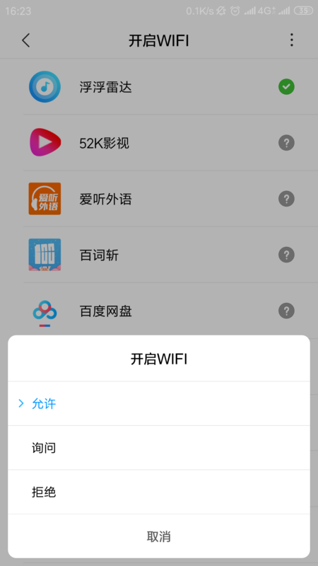 6、点击需要关闭开启WIFI的应用,点击拒绝即可。