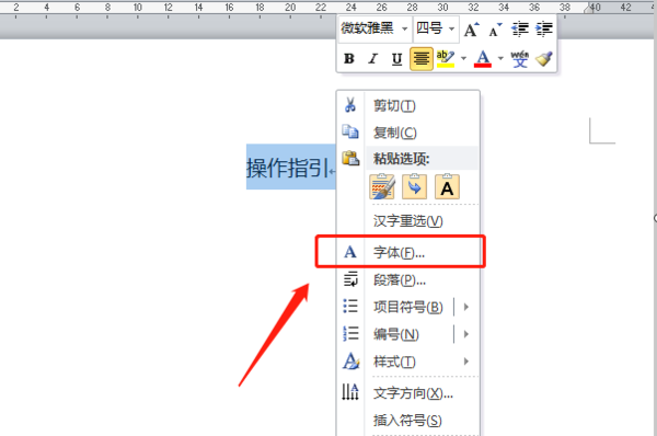 1、如下图,要将该文档的标题设置为黑体、三号、加粗,首先选中标题所有文字,然后点击鼠标右键,在弹出框里选择“字体”;