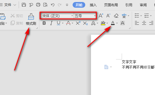 3、用格式刷刷一下字体颜色不同的两个字,刷一下之后,颜色就变成一样的了。