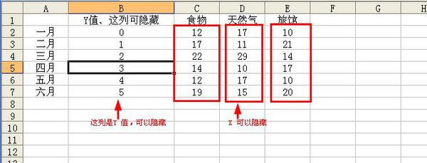 3、在数据B 列插入一列,从0开始,0、1、2、3、4、5、6、7,点数据源修改X Y 值,让折线从0开始终。