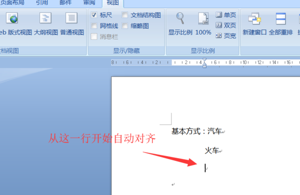5、此时输入的内容会从标尺处开始写入,接下来就不用再拖动标尺直接按“Enter”切换到下一行会自动对齐。