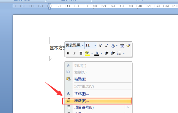1、输入第一行内容后同样要切换到下一行,然后单击鼠标右键选择“段落”。