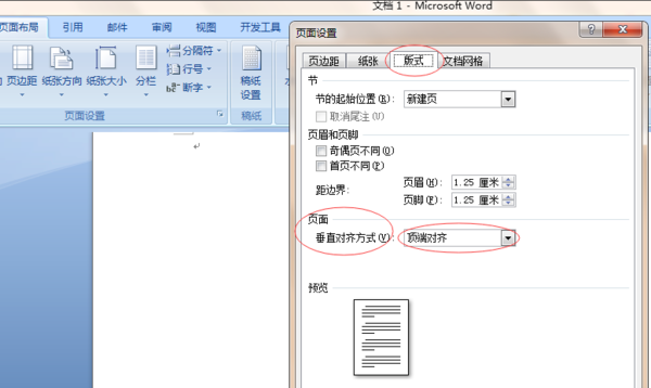 垂直方向:页面布局--页面设置,按这个功能区分组右下角功能展开按钮,调出“页面设置”对话框,在“版式”选项卡,“垂直对齐方式”选择“居中”;