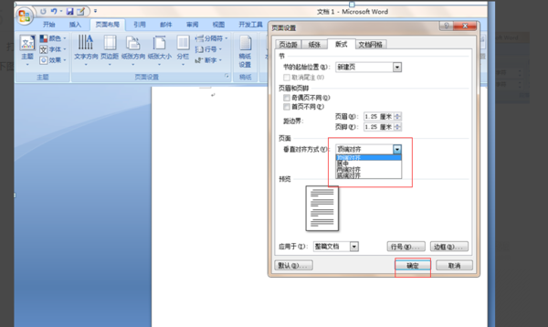 5、页面有四种垂直对齐方法,选择自己喜欢的垂直对齐方法,并点击确定即可。