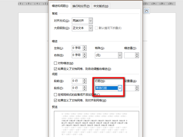 第五步,弹出界面找到行距选择单倍行距确定。
