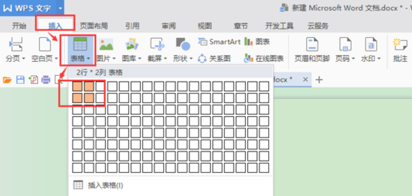 1、打开word文档,在工具栏中点击“插入”,点击下拉菜单中的“插入表格”,选择需要的行数和列数即可;