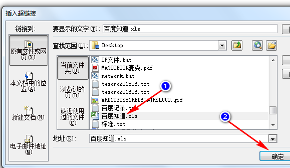 2、在弹出的页面,要到要链接的文件,确定。