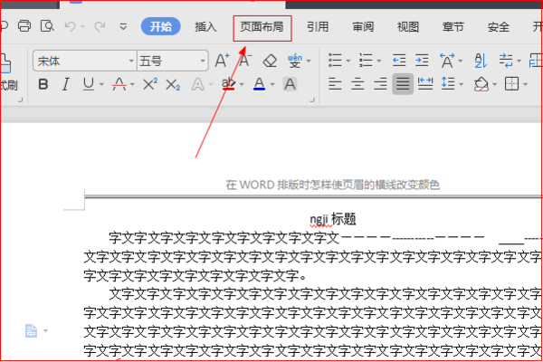 2、打开了文档之后,在文档顶部的功能区里面点击页面布局。
