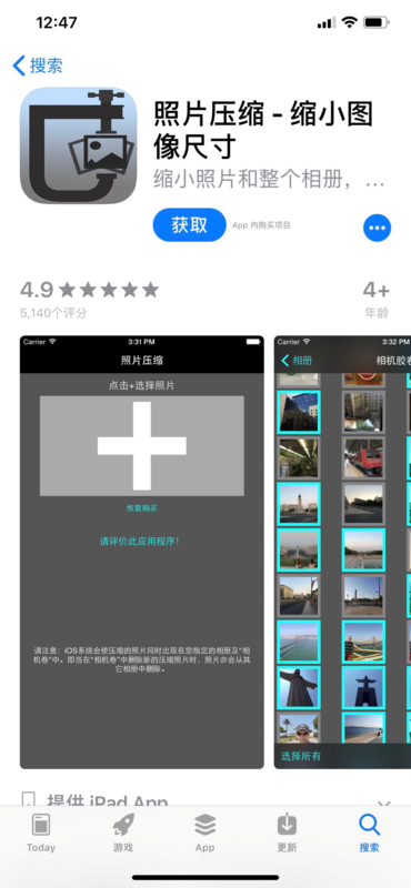 可以下载图片压缩等第三方软件来压缩。这里以照片压缩app为例,操作步骤如下: