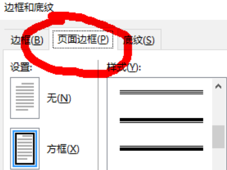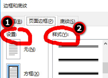 3、在页面边框选项栏中,我们先在左侧的设置里,找到我们想要的页面边框类型,然后选择好页面边框样式。