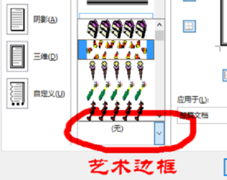 6、最后,我们需要设置我们想要将编辑好的边框样式应用到文档中的哪些地方:是整篇文档,还是文档中的某一处。