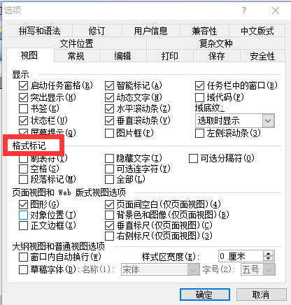 通过单击“工具”菜单上的“选项”,再单击“视图”选项卡,然后选中或清除“格式标记”下的选项,可显示或隐藏格式标记。