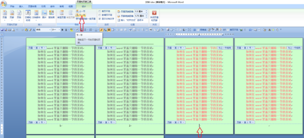 2.按“Delete”键删除页码,单击“下一节”命令,如下图: