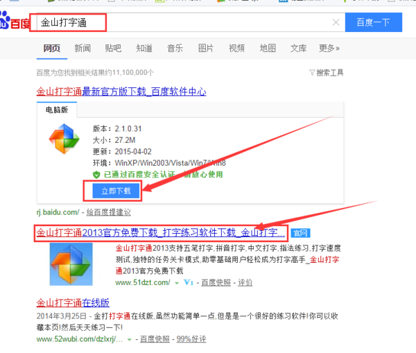 2、下载打字练习软件,以“金山打字通”为例下载方法如下: