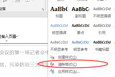 双击页眉——页眉编辑模式——开始——点击去除格式按钮,如图: