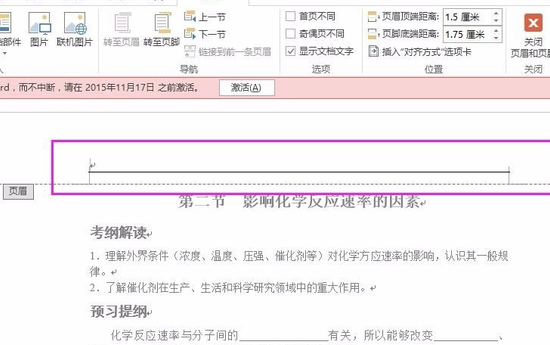 如果仅仅想去除页眉下的横线,最为便捷的就是改变页眉的样式。例如,我们在编辑页