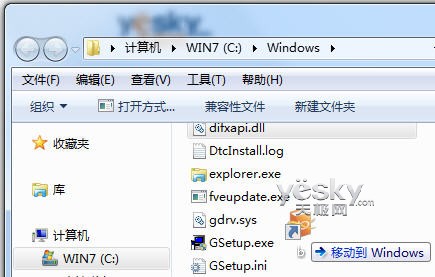 图示:将修改文件名的快捷方式拖入Windows目录