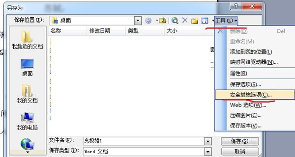 2、选“文件”的“另存为”,出现“另存为”对话框,在“工具”中选“常规选项”,出现“保存”选项卡。