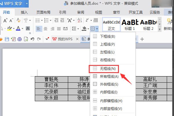 选中需要去掉的虚框文本----选择菜单中的“表格”---- 选择“隐藏虚框”