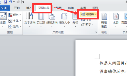 2、点击页面布局菜单 之后,出现分隔符如下图点击进入