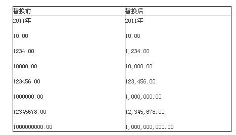 注意:查找内容:([0-9])([0-9]{3})([.,])和替换为: \1,\2\3是固定不变的,在输入法为英文半角的状态输入。