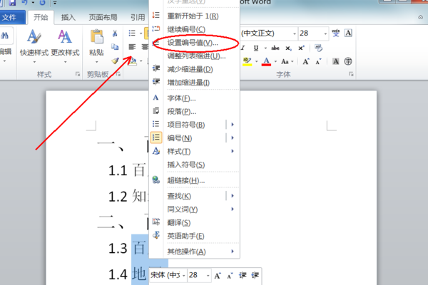 1、打开需要操作的WORD文档,选中相关文本段落,点击鼠标右键然后选择“设置编号值”。