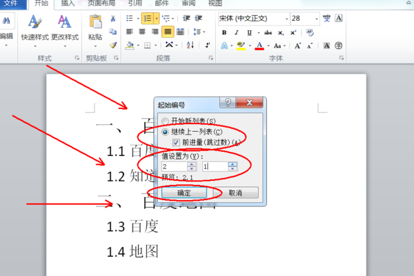 word二级标题自动编号,本来应该是2.1,可是却变成1.3,怎么办?