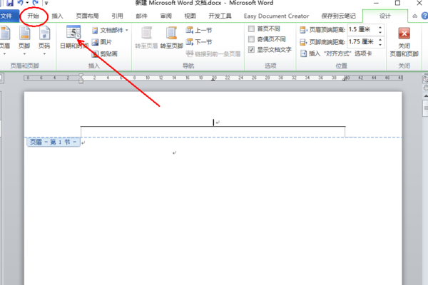 1、打开需要操作的WORD文档,双击页眉区域位置,然后点击开始标签页,切换到开始选项卡中。