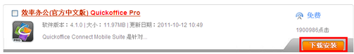 首先在手机助手里输入“quickoffice”,找到quickoffice后点击“下载安装”。
