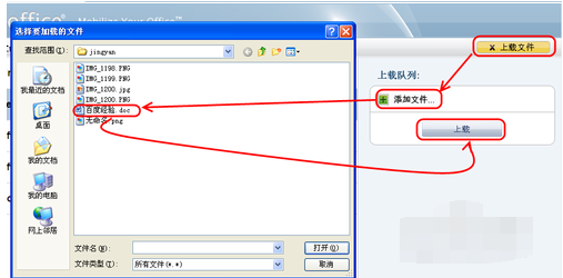 点击“上载文件”按钮,然后点“添加文件”,在弹出选择要加载的文件窗口里选择要添加的文件,最后点击“上载”按钮。