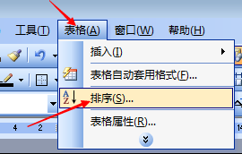 1、光标定位到数字列中,点击菜单栏“表格”-“排序”