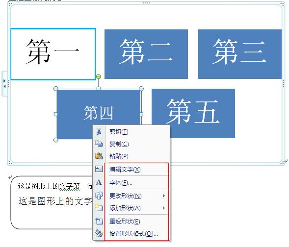 1、07版word插入的形状和smart形状,其中的文字的处理就和文本框里面的文字处理是一样的,你可以设置线条、颜色、字体、阴影等。右击形状即可选择相应的内容进行更改