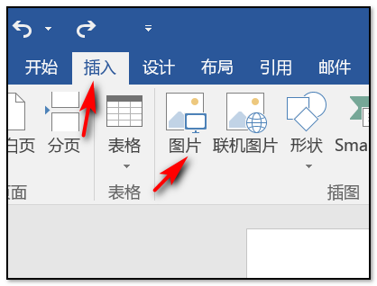 2、打开word2016软件以后,为了更好的示范先点击左上角的“插入”选项里的“图片”;