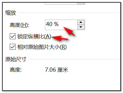 5、点击大小以后,弹出的对话框在缩放栏里可以对“高度”和“宽度”进行设置,并勾选“锁定纵横比”;