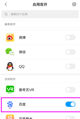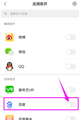 2、找到我们想要双开的应用,点击对应的按钮。在没有开启双开功能的情况下,按钮是灰色的。点击后,应用开始加载双开功能。如果应用第一次双开会比较慢,需要耐心等待;