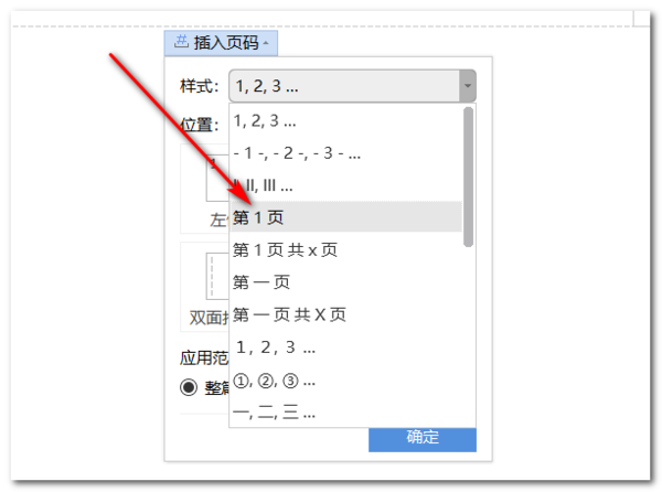 3、打开后,选择需要插入的页眉类型,左键单击。