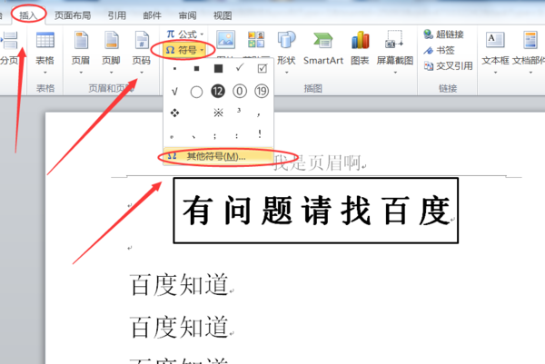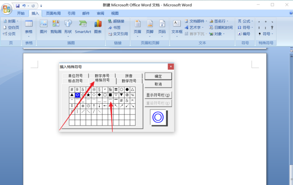 切换到“插入”功能区,在符号选项组单击“符号”按钮,出来的窗口单击“其他符号”。