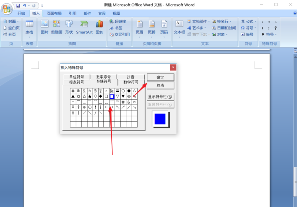 在符号框中找到并选中“■”,单击“插入”按钮,白色方框即变更为黑色方框。