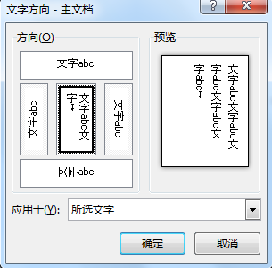 “方向”中选择文字方向,“应用于”中选择改变全部文字方向还是仅仅改变所选文字方向
