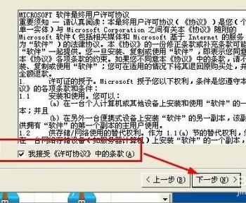 勾选【我接收《许可协议》中的条款】。点击【下一步】。