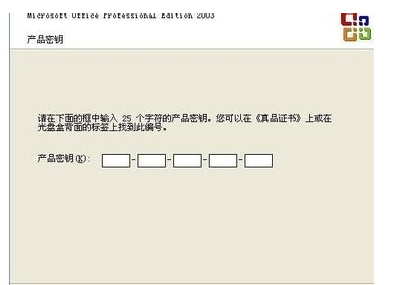 然后要求输入word2003产品密钥,这时候只需要网上搜索一个有效密钥即可。然后复制粘贴输入。