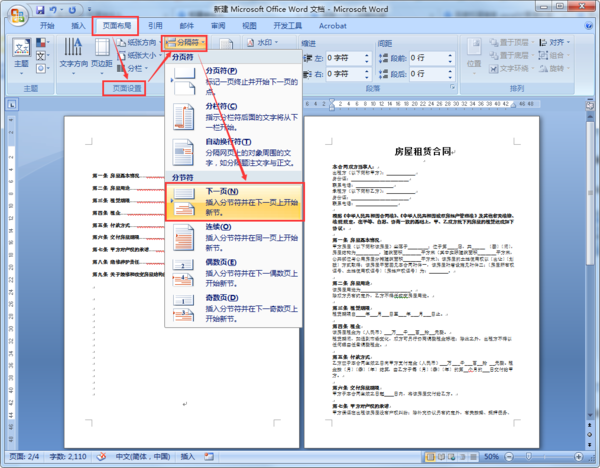 如何在word中分开标页码