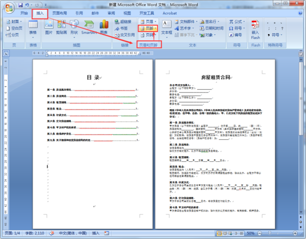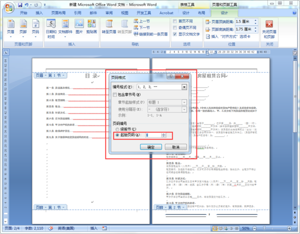 怎么在07版word中从目录后面开始加页码