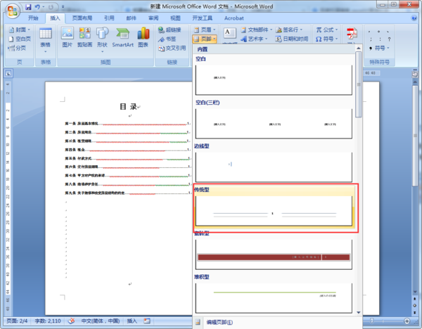 4、在页脚的下拉菜单中选择页脚样式,如“传统型”,见下图。