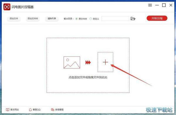 1、首先,电脑没有图片压缩器的,我们需要下载安装并运行,点击软件中间的“+”号。
