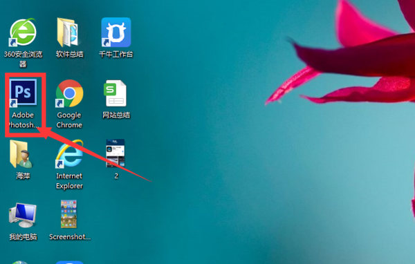 1、首先找到桌面的Photoshop绘图软件的图标,双击打开